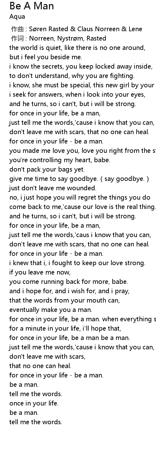 | [03:06.96] | for once in your life, be a man. when everything stops...... |