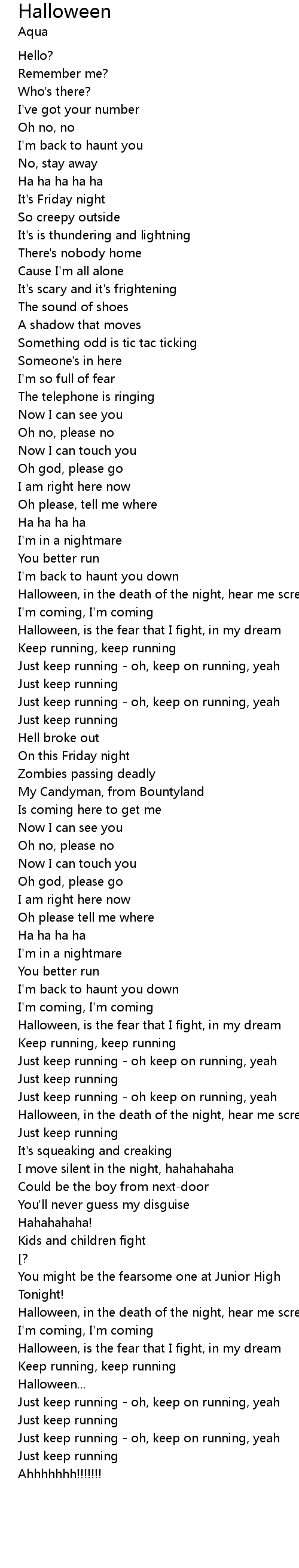 | [02:43.410] | Halloween, in the death of the night, hear me scream |