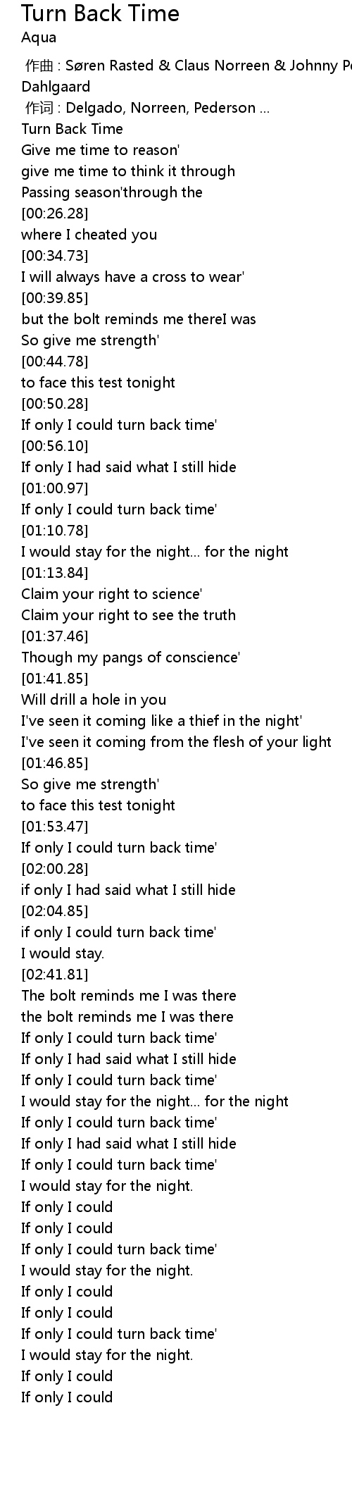 | [02:45.93] | If only I could turn back time' |