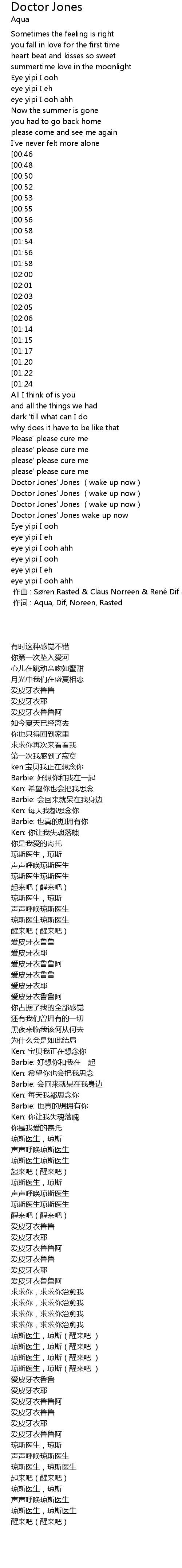 | [00:00.00] | 作词 : Aqua, Dif, Noreen, Rasted |