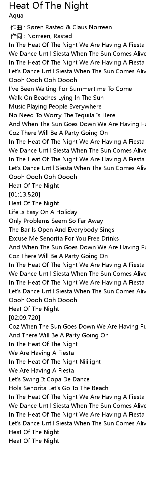| [00:50.100] | In The Heat Of The Night We Are Having A Fiesta |