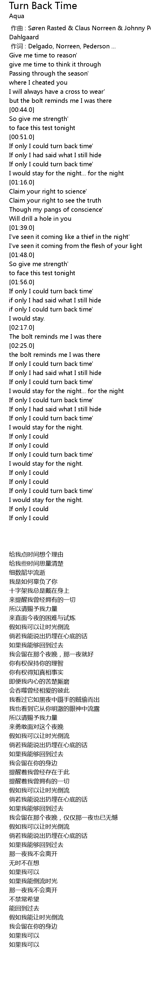 | [03:02.0] | If only I could turn back time' |