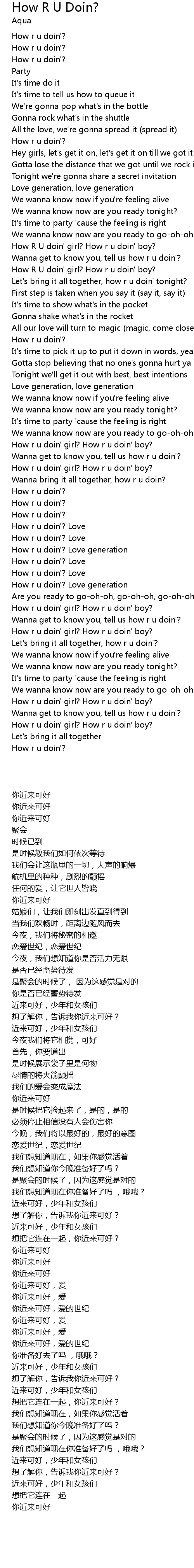 [01:01.36] How R U doin' girl? How r u doin' boy?