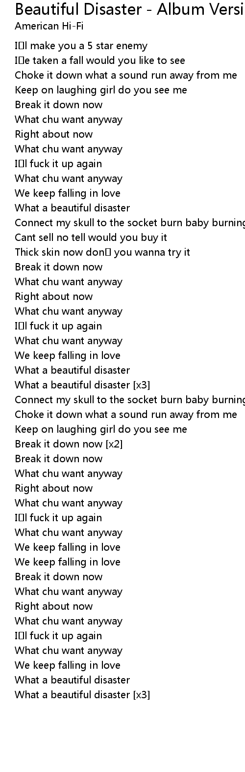 | Song | Beautiful Disaster - Album Version (Explicit) |