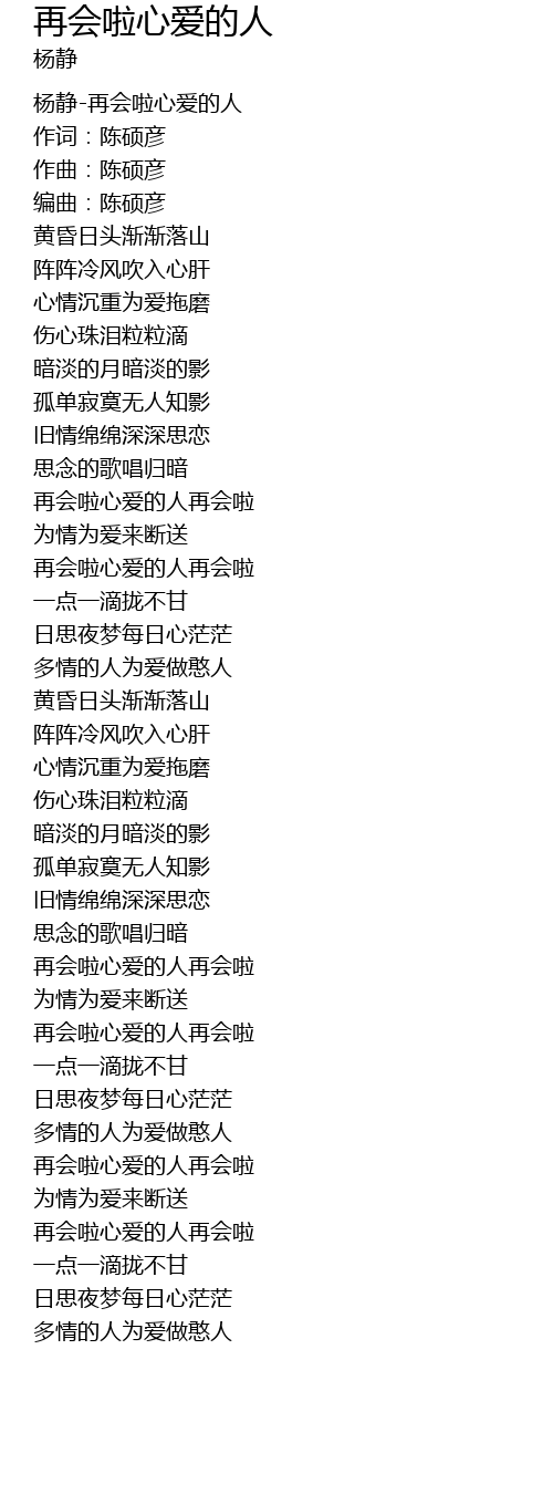 | [00:00.113] | 杨静-再会啦心爱的人 |