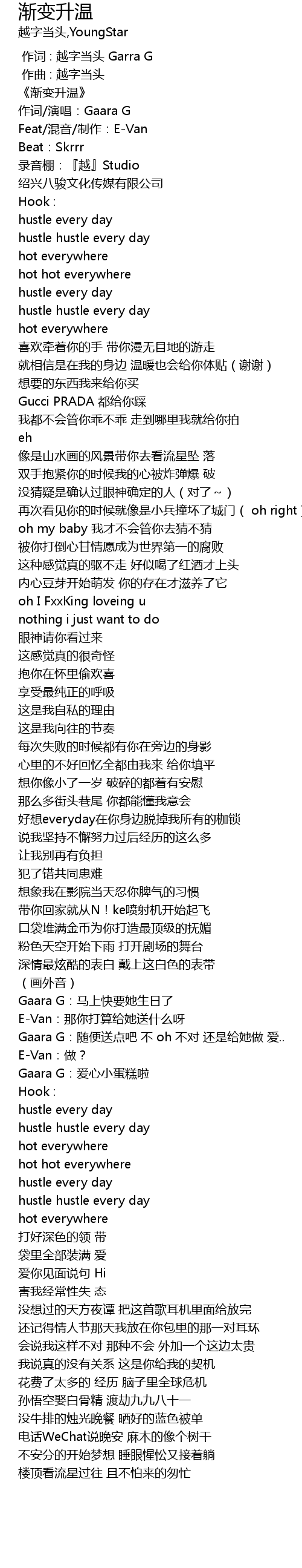 | [00:00.000] | 作词 : 越字当头 Garra G |