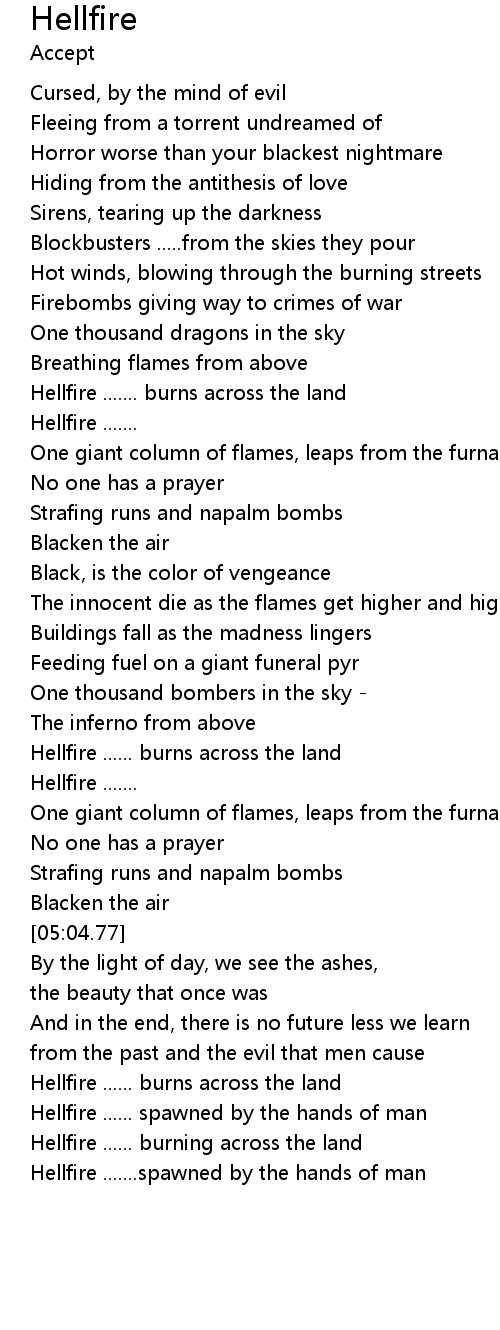 Hellfire ...... burns across the land |