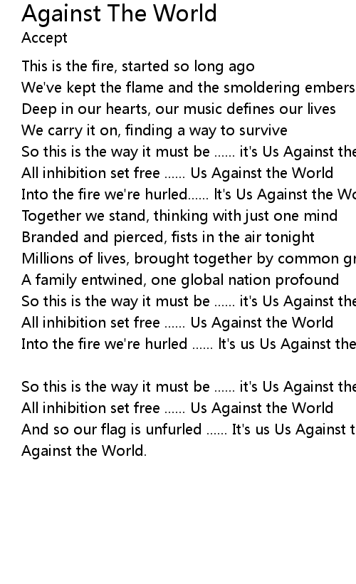 So this is the way it must be ...... it's Us Against the World |