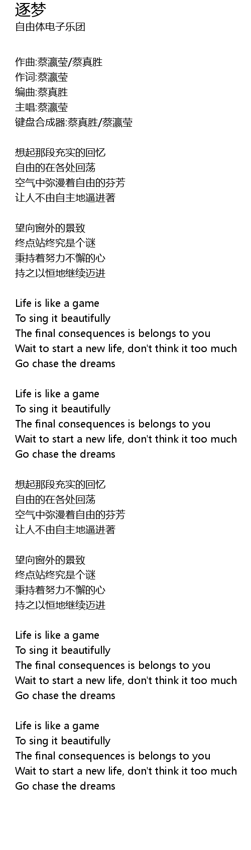 | 键盘合成器:蔡真胜/蔡瀛莹 | |