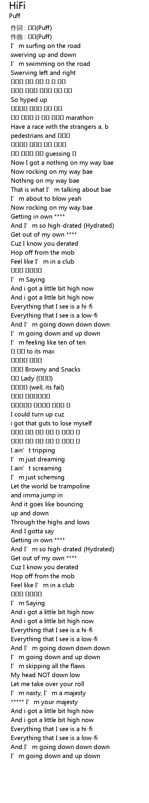 | [00:01.000] | zuò qǔ : Puff |