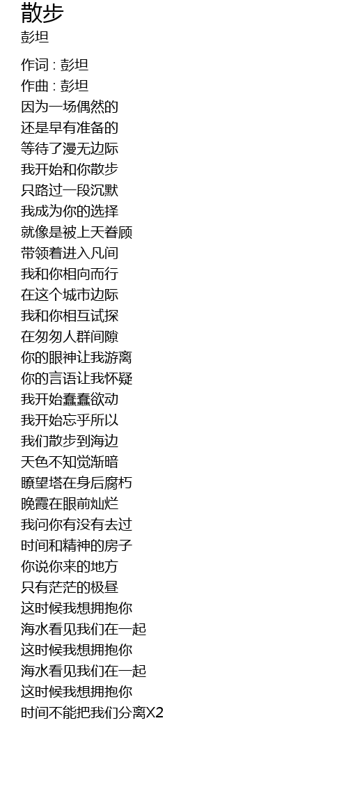 | wǒ kāi shǐ hé nǐ sàn bù | |