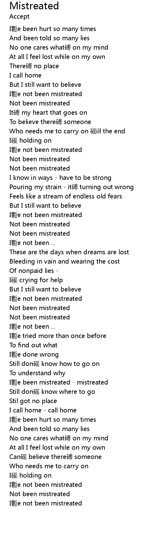 | I chan e been mistreated mistreated | |