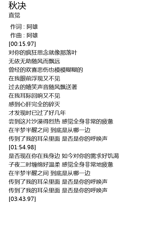| [00:43.06] | guo qu de xi xiao sheng yin sui feng piao song zhe |