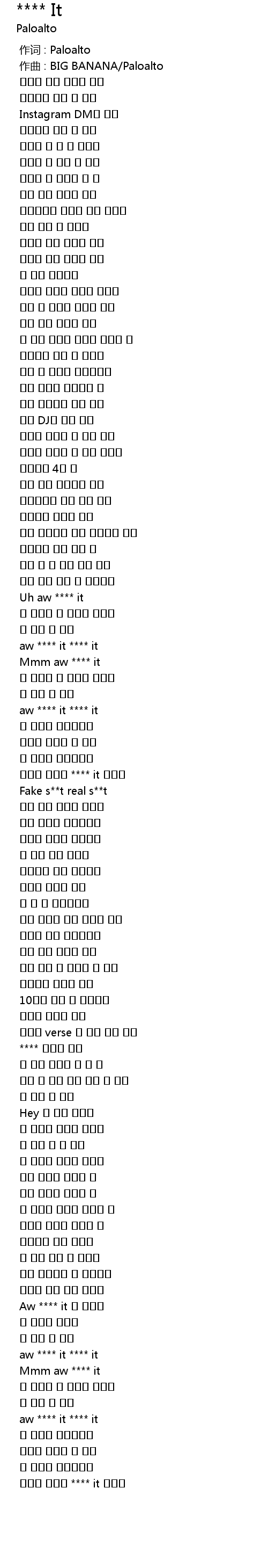 | [01:25.808] | 한참을 참았어 **** it 꺼져줘 |