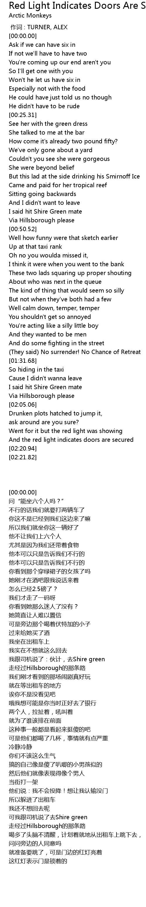 | [00:00.00] | 作词 : TURNER, ALEX |