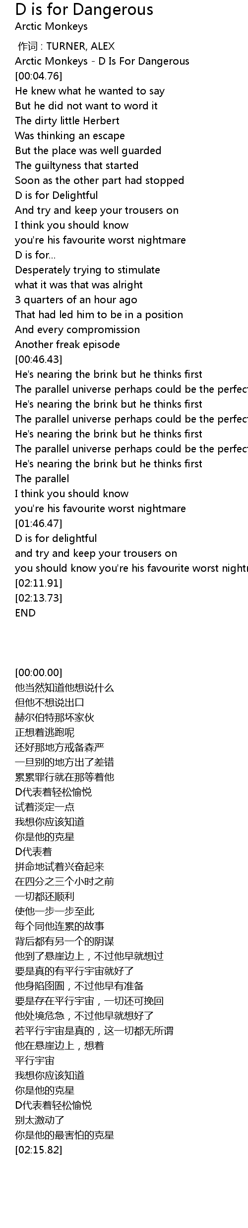 | [00:00.00] | Arctic Monkeys - D Is For Dangerous |