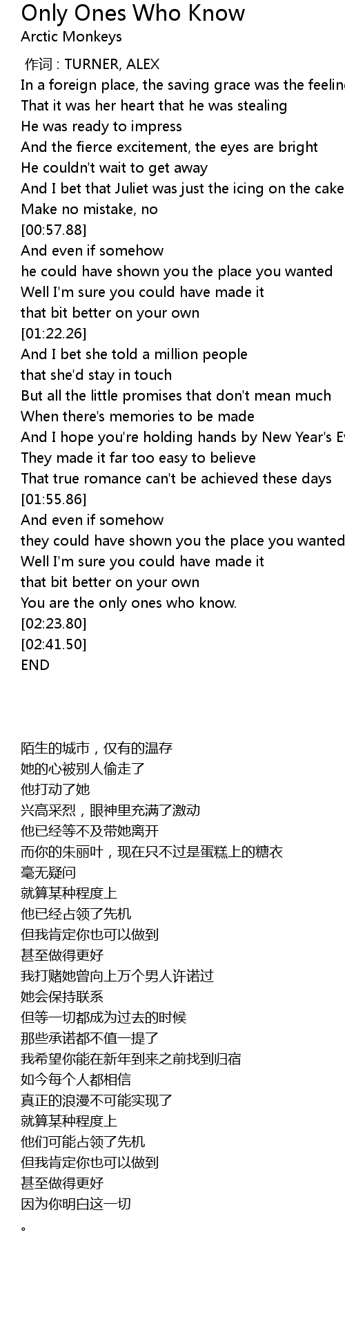 | [00:00.00] | 作词 : TURNER, ALEX |