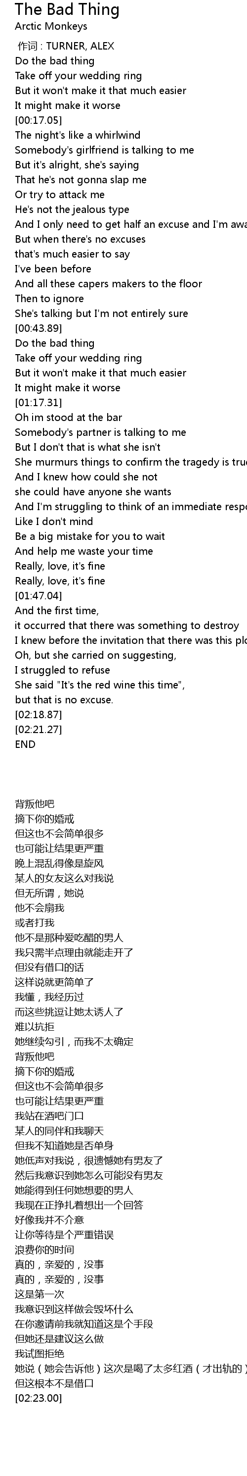| [00:00.00] | zuò cí : TURNER, ALEX |