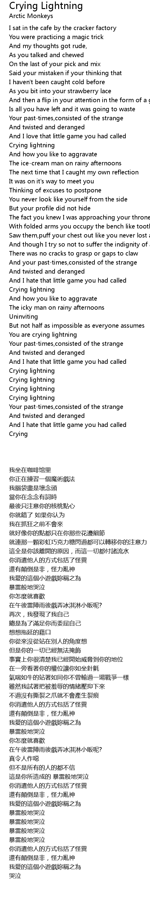 Crying Lightning Lyrics