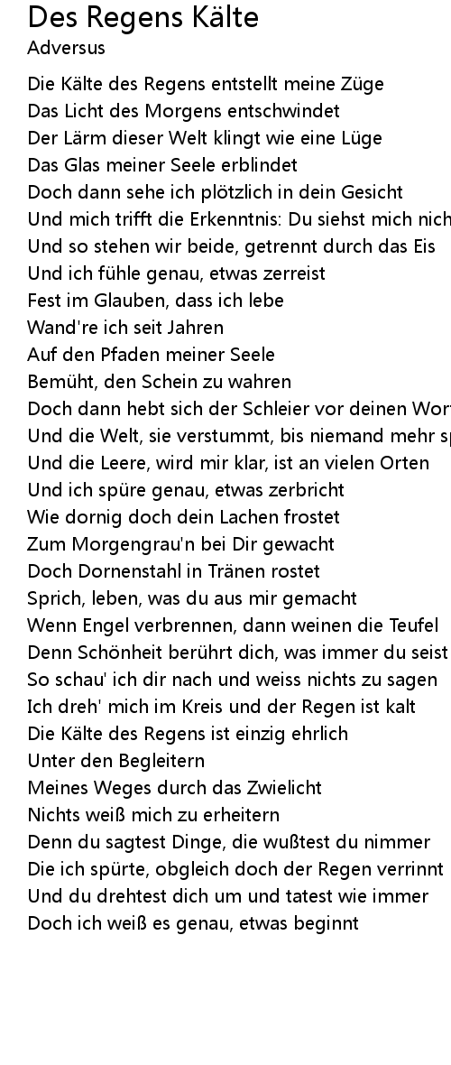| Die ich spü rte, obgleich doch der Regen verrinnt | |