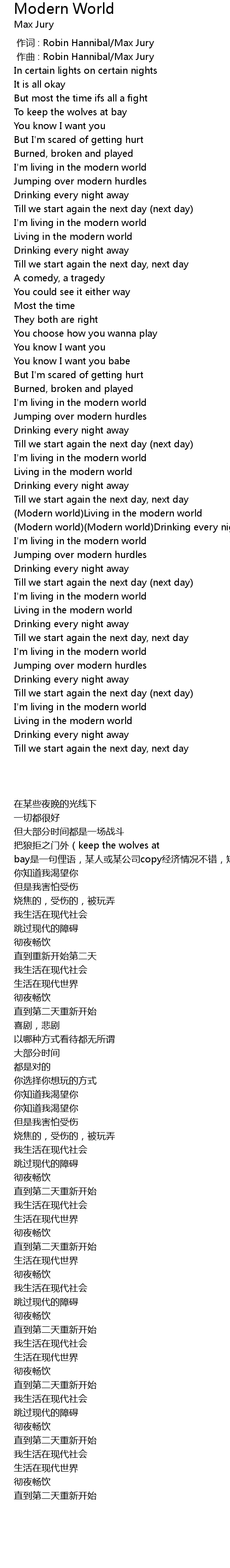 | [02:04.30] | Modern world Modern world Drinking every night away |