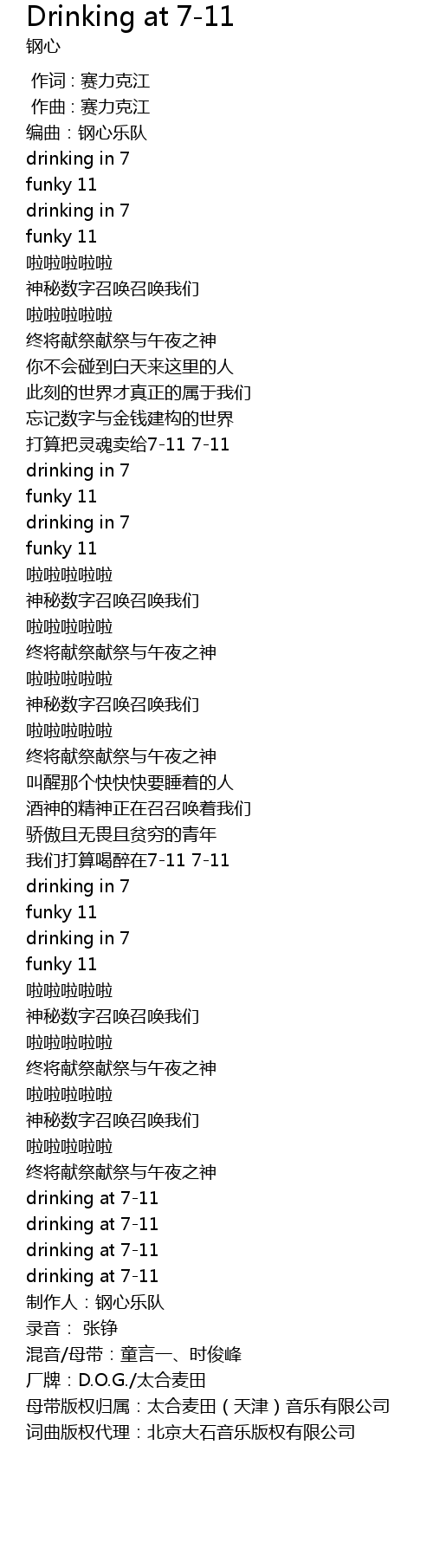 | [02:23.81] | 我们打算喝醉在7-11 7-11 |