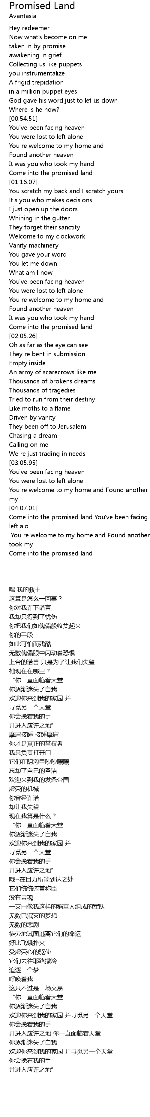 [04:07.57] Come into the promised land You've been facing heaven You were lost to left alo