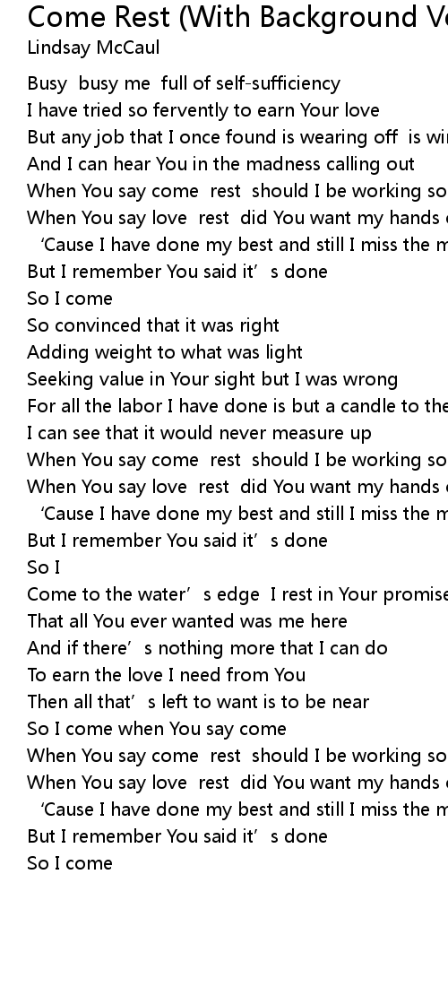 | Song | Come Rest (With Background Vocals) - [Performance Track] |