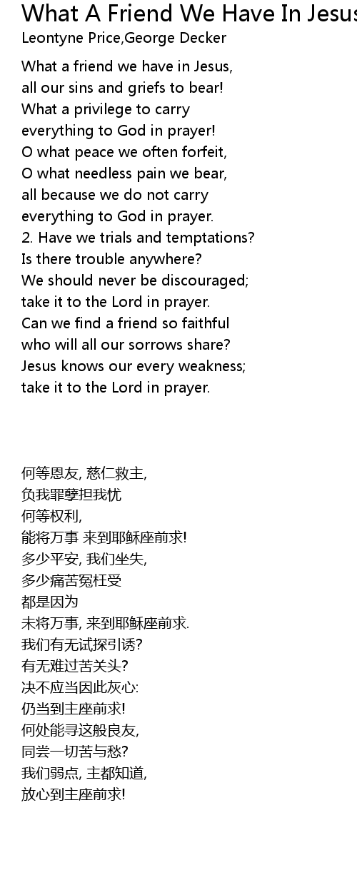Song What A Friend We Have In Jesus