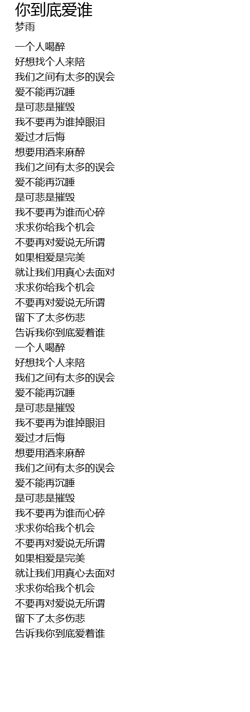 | [01:39.39] | 告诉我你到底爱着谁 |