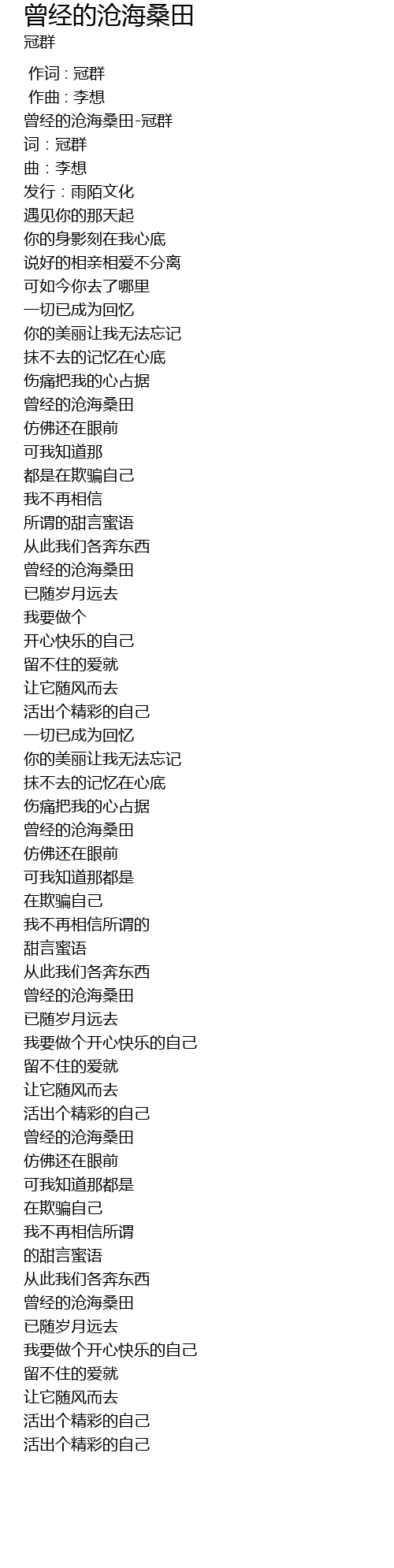 | [00:00.732] | 曾经的沧海桑田-冠群 |