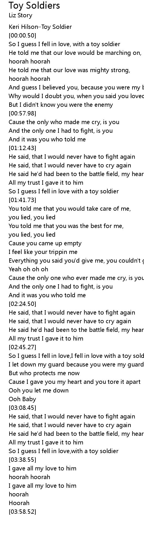 | [03:29.02] | So I guess I fell in love,with a toy soldier |