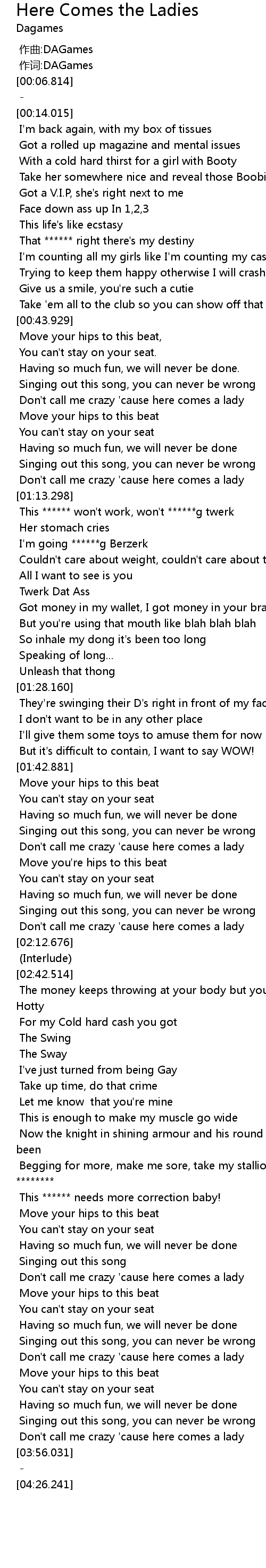 | [01:13.300] | This ****** won't work, won't ******g twerk |