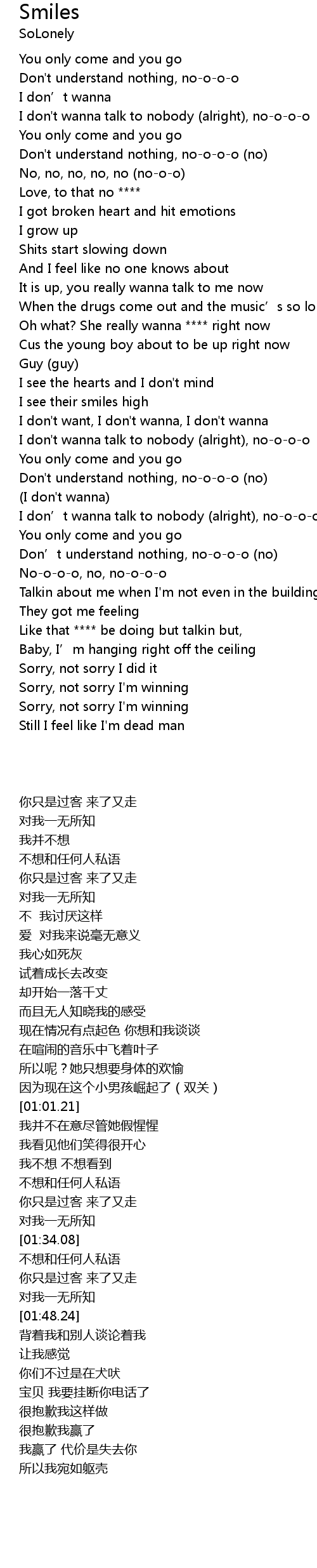 | [01:22.34] | I don't wanna talk to nobody (alright), no-o-o-o |