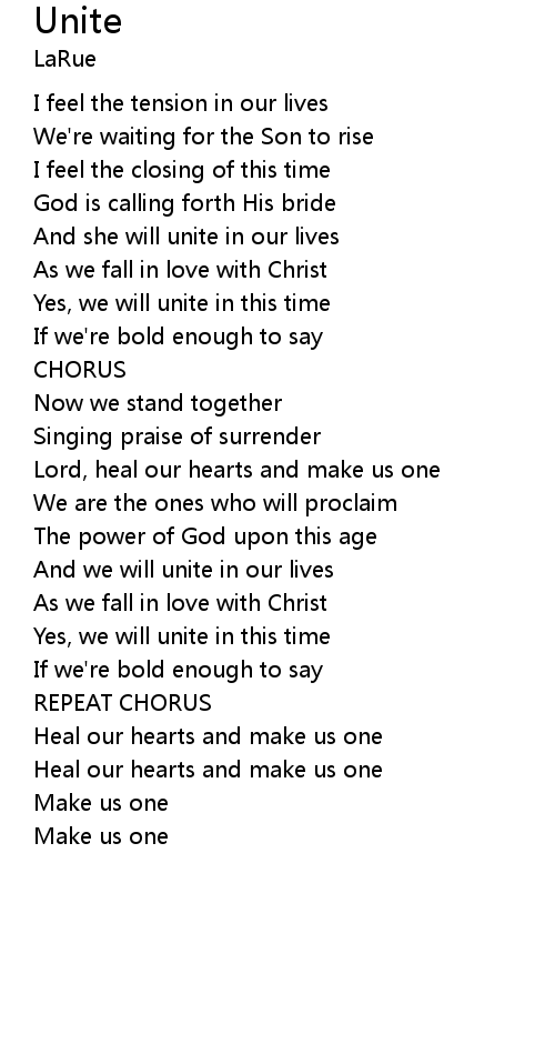 | Heal our hearts and make us one | |