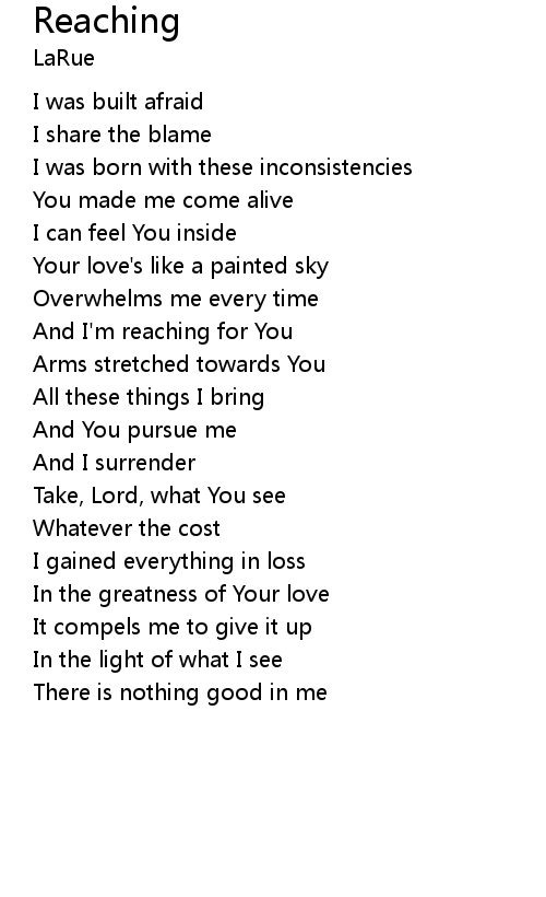 | And I'm reaching for You | |