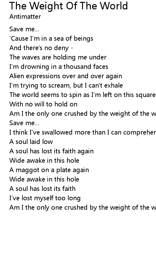 Am I the only one crushed by the weight of the world? |