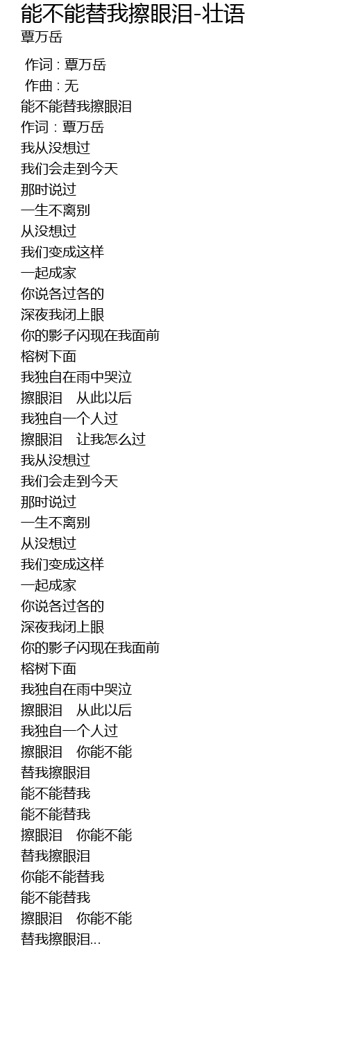 | [00:12.691] | 能不能替我擦眼泪 |