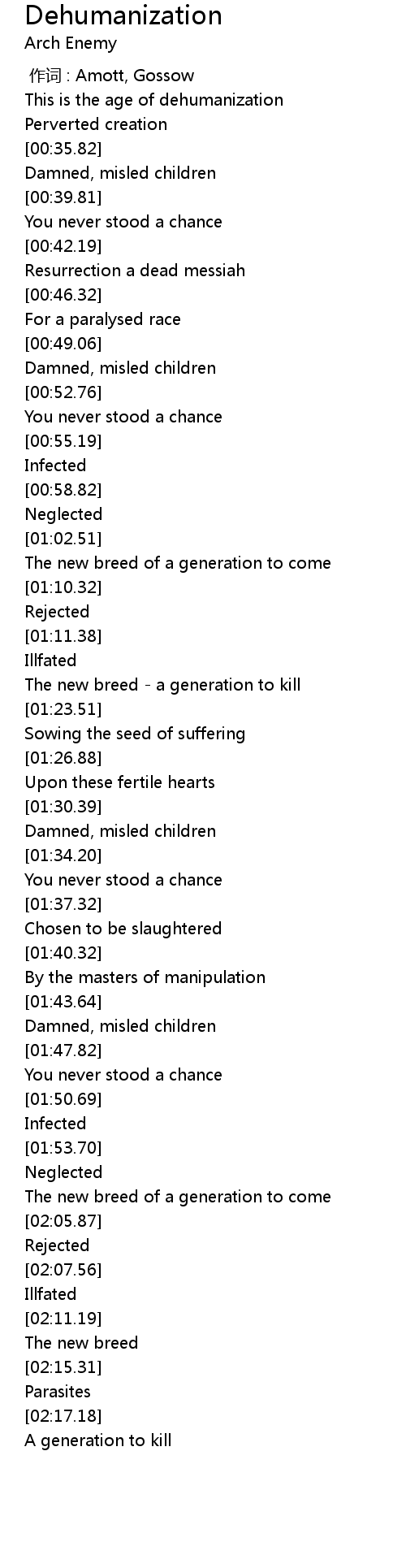 | [00:00.00] | 作词 : Amott, Gossow |