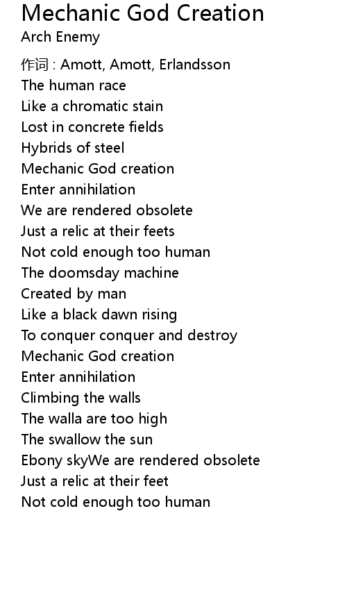 | Song | Mechanic God Creation |