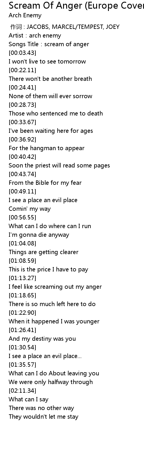 | [00:02.57] | Songs Title:scream of anger |