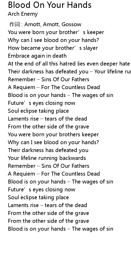 | [01:34.69] | Blood is on your hands The wages of sin |