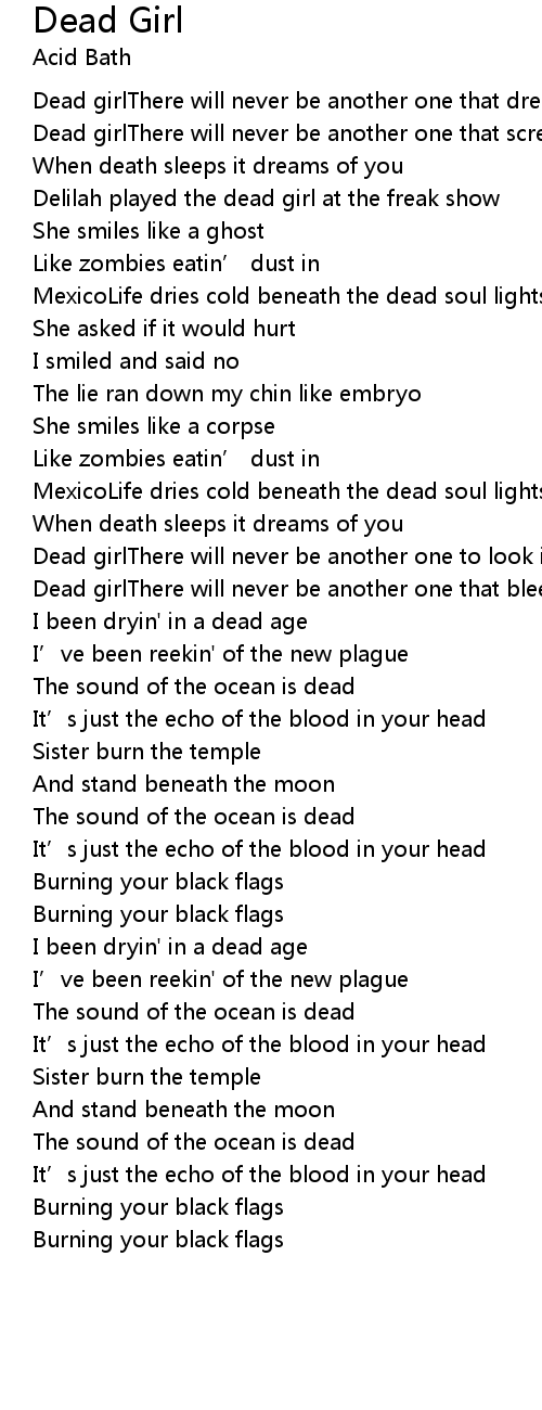 | Dead girlThere will never be another one that bleeds like you | |