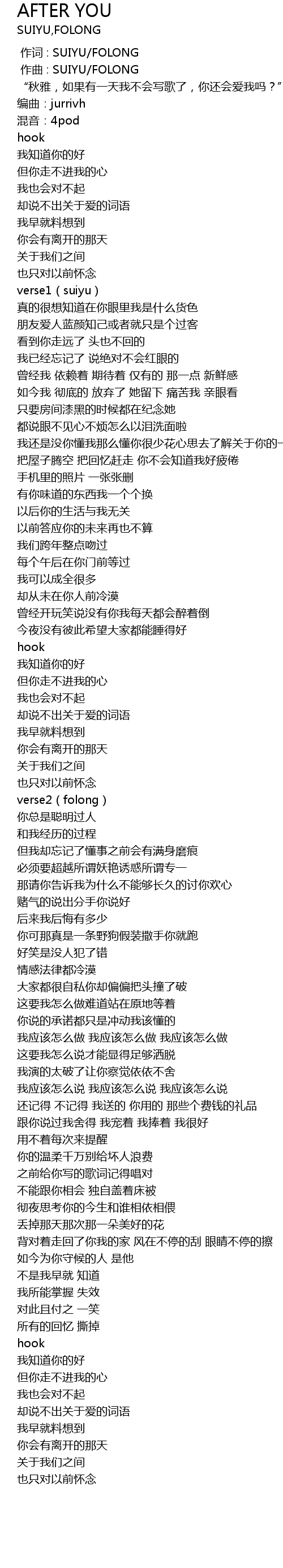 | [00:01.770] | " qiu ya, ru guo you yi tian wo bu hui xie ge le, ni hai hui ai wo ma?" xia luo te fan nao |