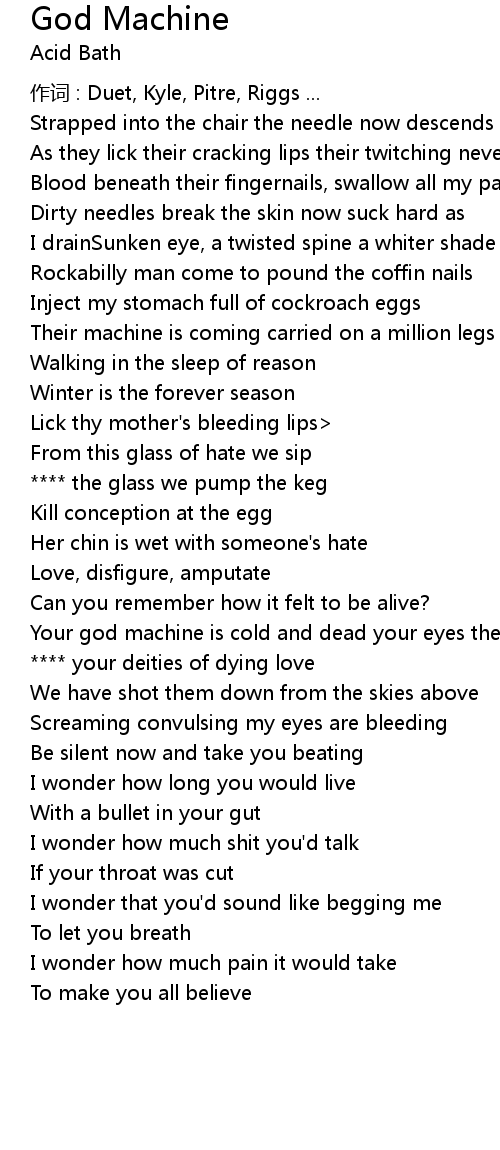 | Your god machine is cold and dead your eyes they cannot cry | |