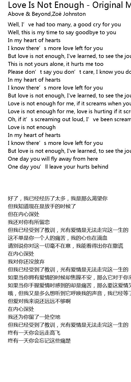 | [02:14.21] | But love is not enough, I' ve learned, to see the journey through |