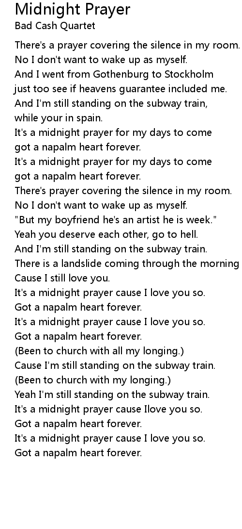 It's a midnight prayer cause I love you so. |