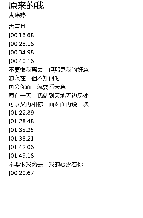 | [02:32.42][01:38.21] | 原来的你 可否不放弃 |