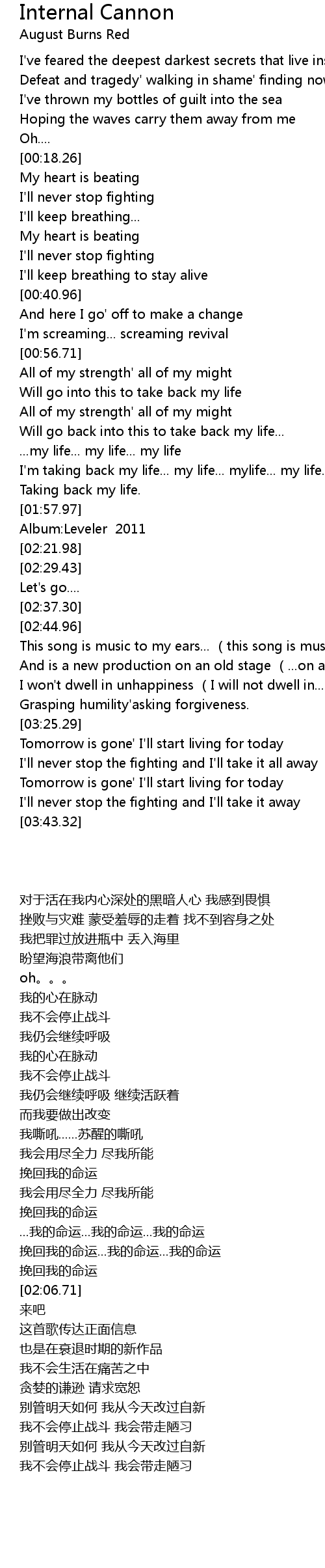 | [00:00.36] | I' ve feared the deepest darkest secrets that live inside of me |