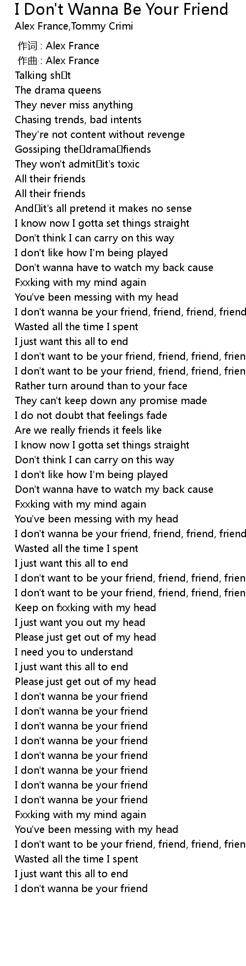 | [00:45.933] | I don' t wanna be your friend, friend, friend, friend |